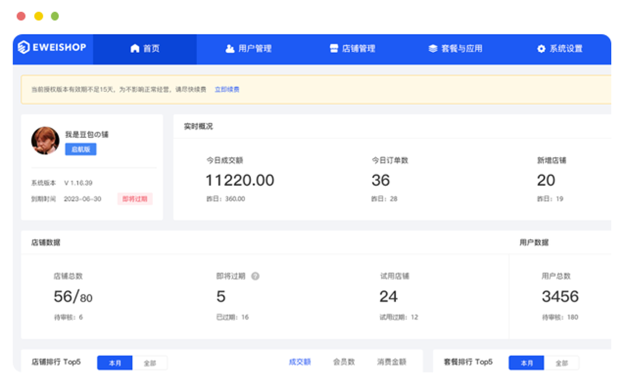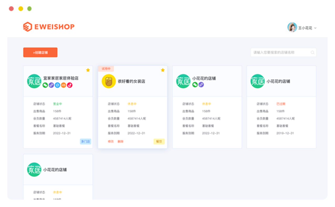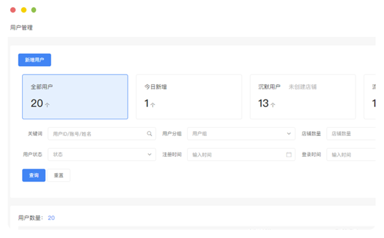 重新优化和布局功能模块,帮您高效管理用户和店铺